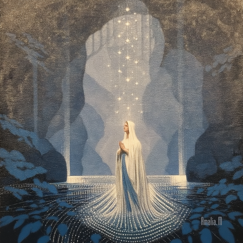 聖母の祈りは、ひとりのための祈りでありながら、同時に世界の痛みやよろこびをそっと抱きとめる、果てのない愛のかたちにも見える。