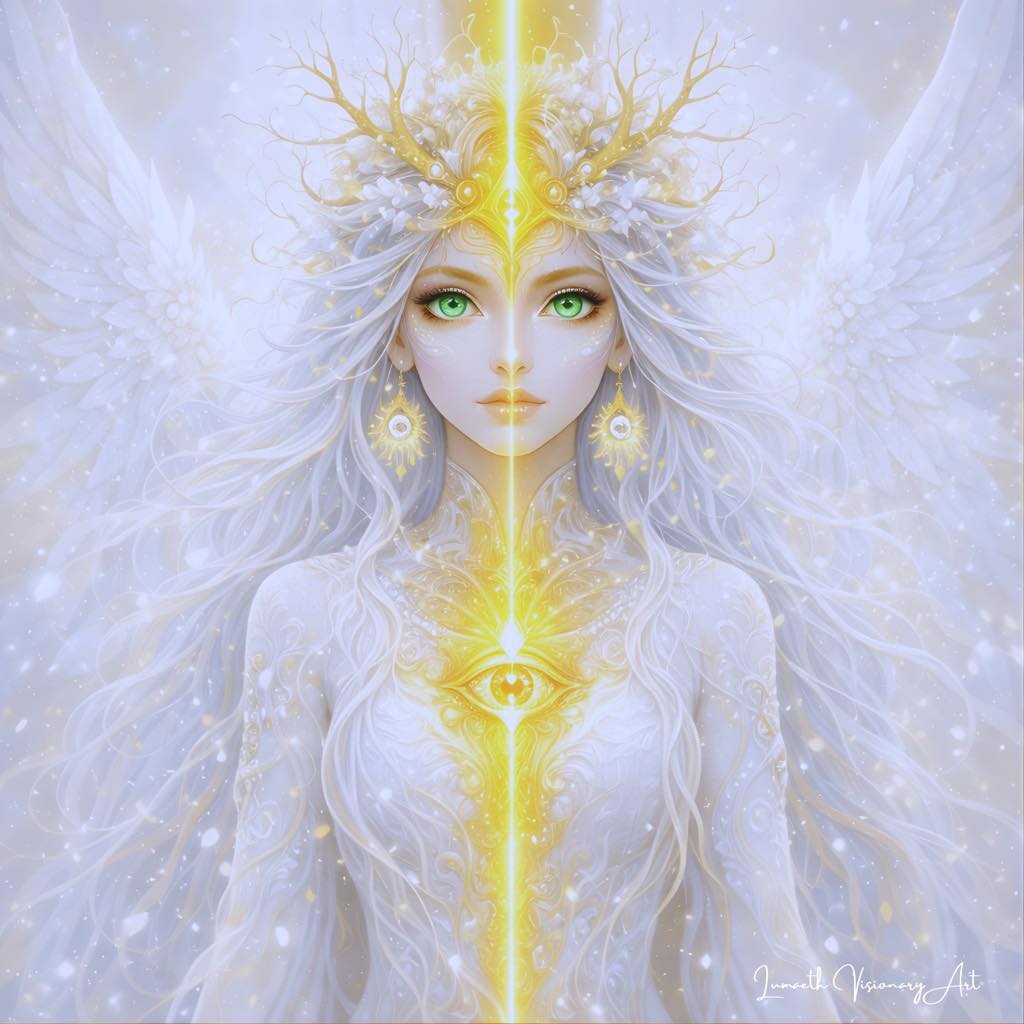 その瞳は、目に映る形あるものだけではなく、まだ顕れていない可能性、そして大地と星々の間を流れる見えない叡智の脈動を感じ取るために開かれています。
