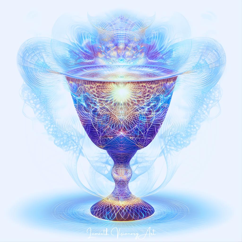 The luminous chalice holds the energy of creation, remembrance, and divine receptivity.