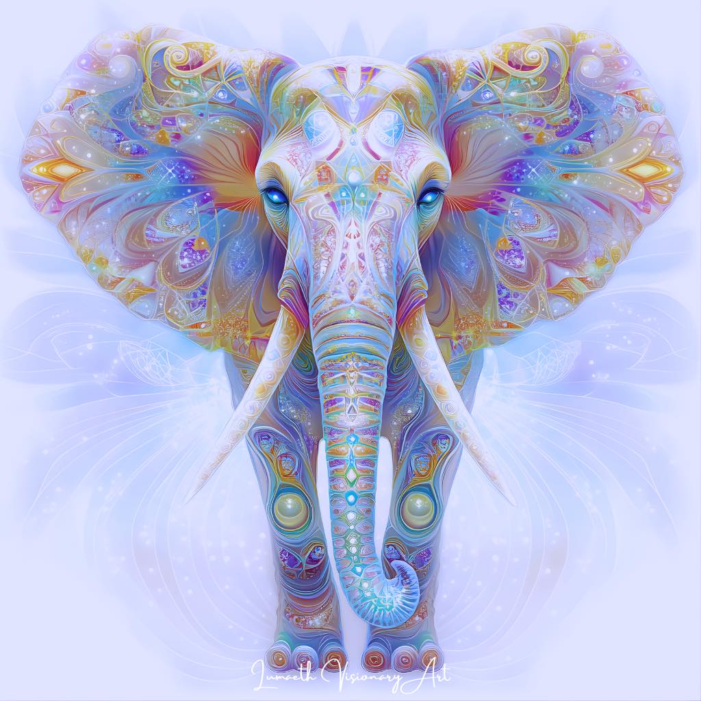 The rainbow-lit elephant embodies the wisdom that opens new paths.