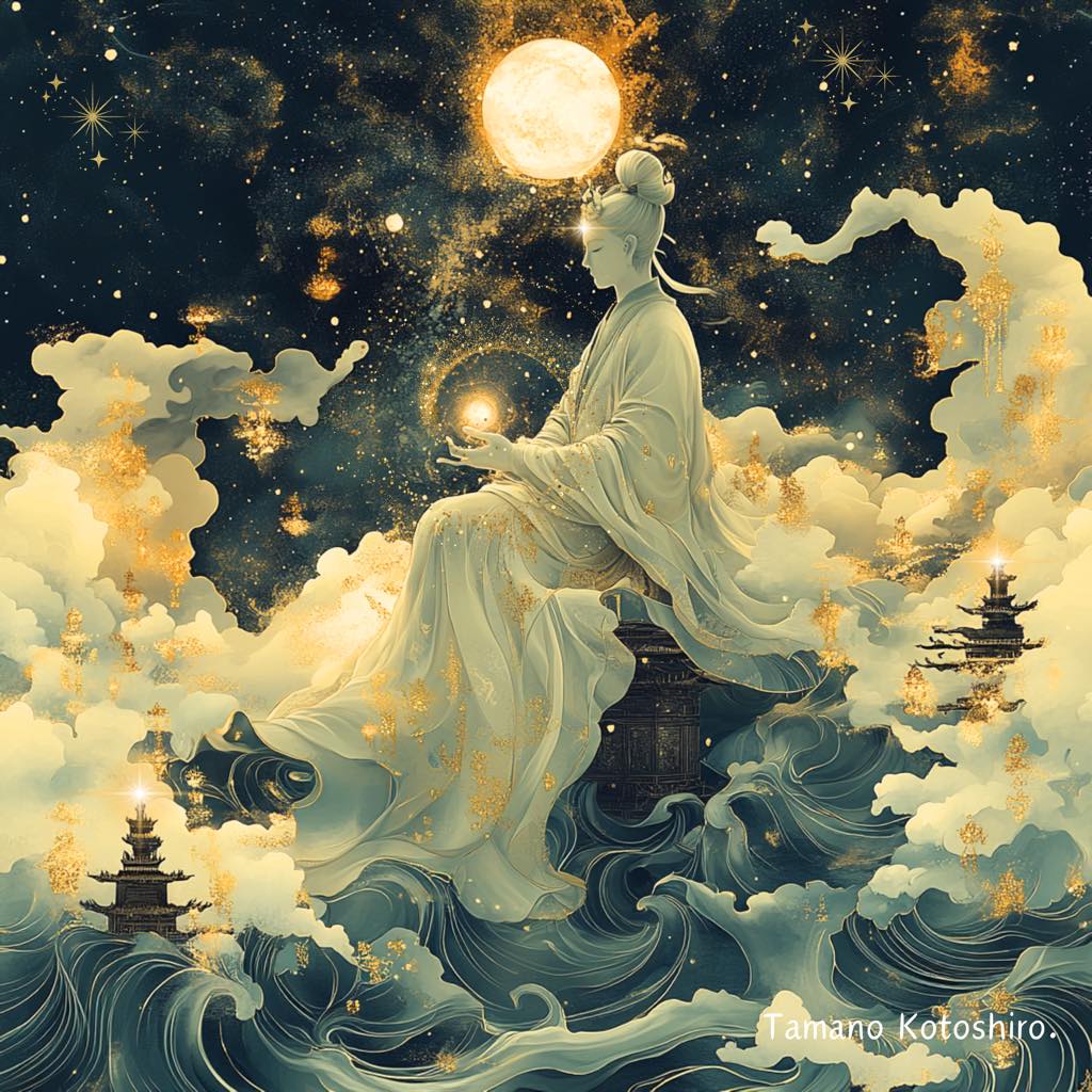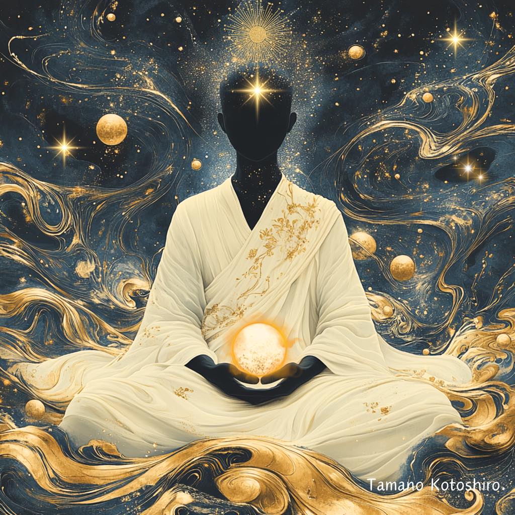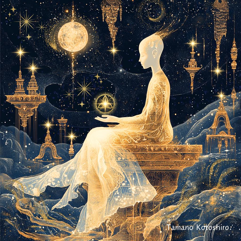 このアートは「魂の再誕」と「宇宙の導き」を象徴しています。