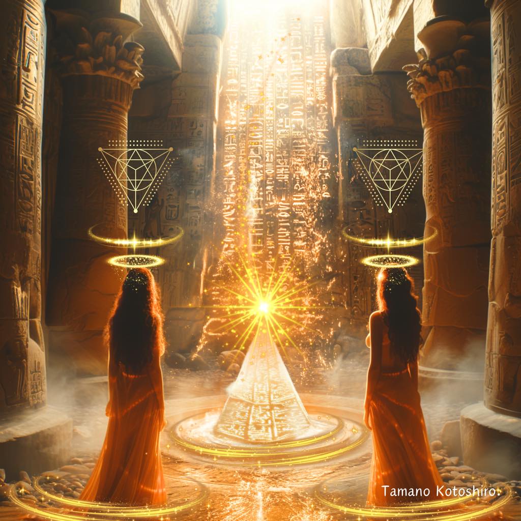 黄金の光が降り注ぐその空間で、魂の記憶を呼び覚ますイニシエーションが始まる。