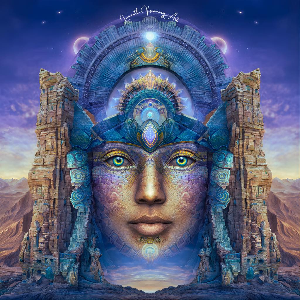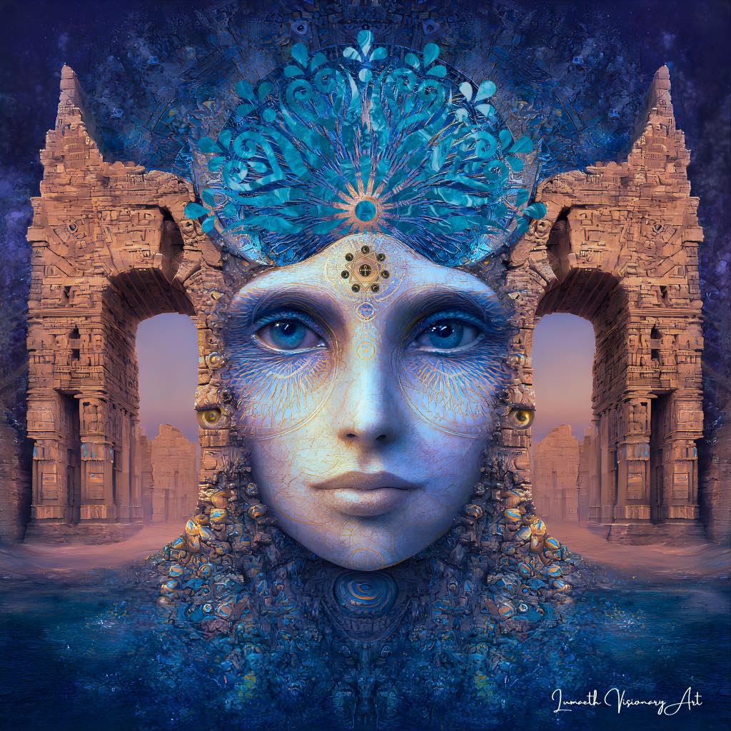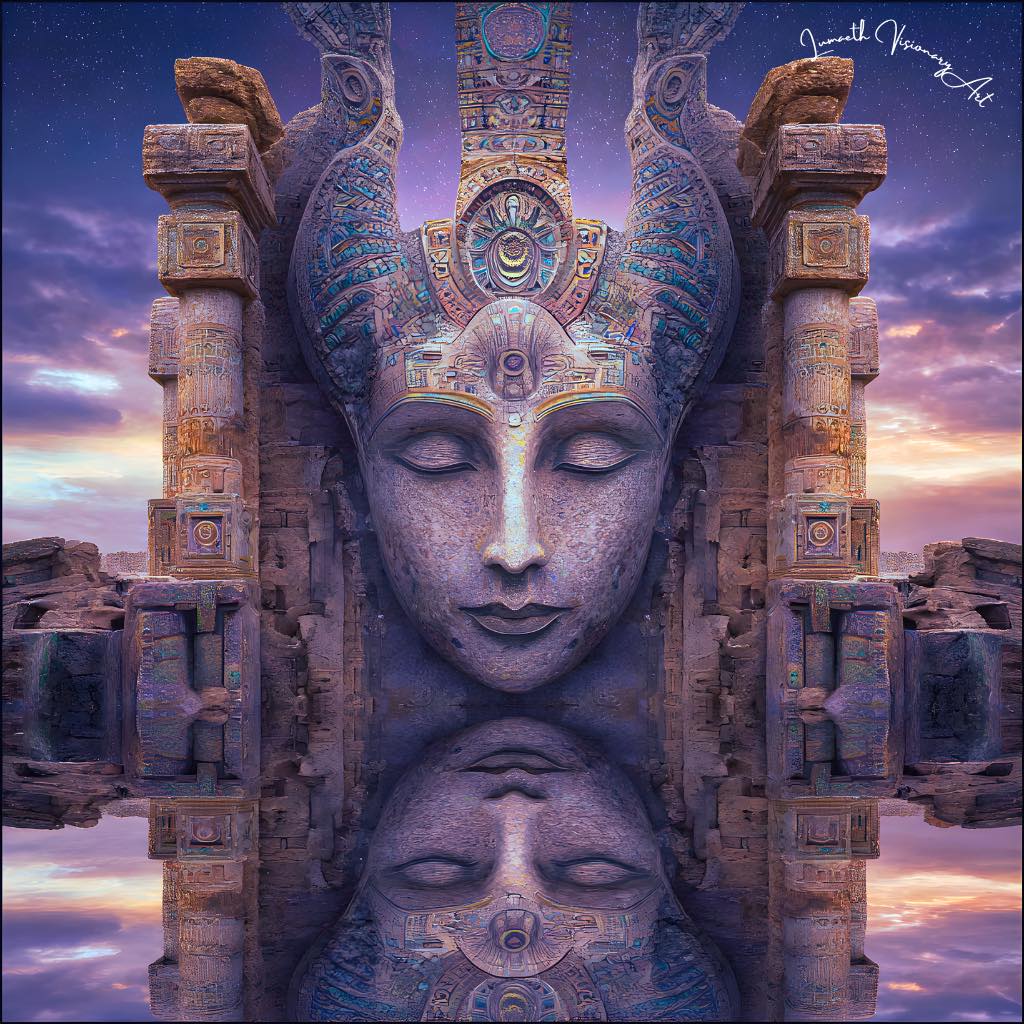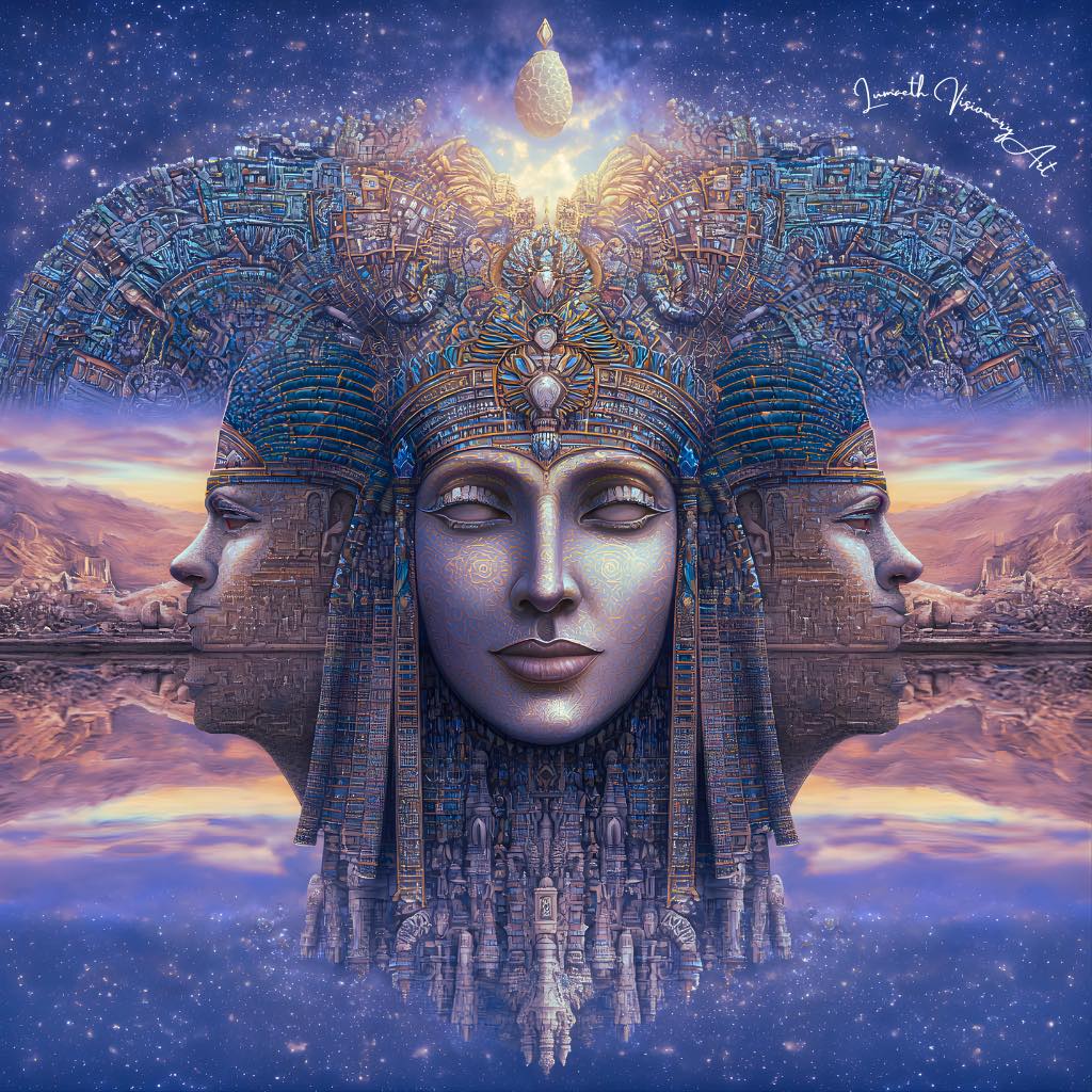 意識の中心がひらくとき、すべての層はひとつの響きとして整ってゆく。 蒼の奥に宿るのは、魂が重ねてきた時間の結晶と、そのすべてを貫くひとつの意志。 この視線に触れる瞬間、内なる核は静かに共鳴し、存在はそのままの完全なかたちで拡張していく。 その響きは、意識の最深層へと広がり、すべてはひとつの光として満ちている。