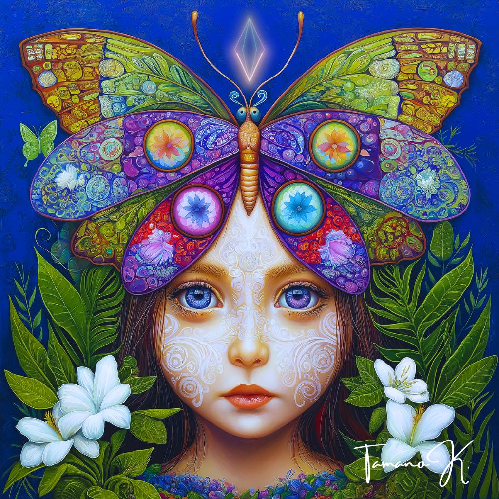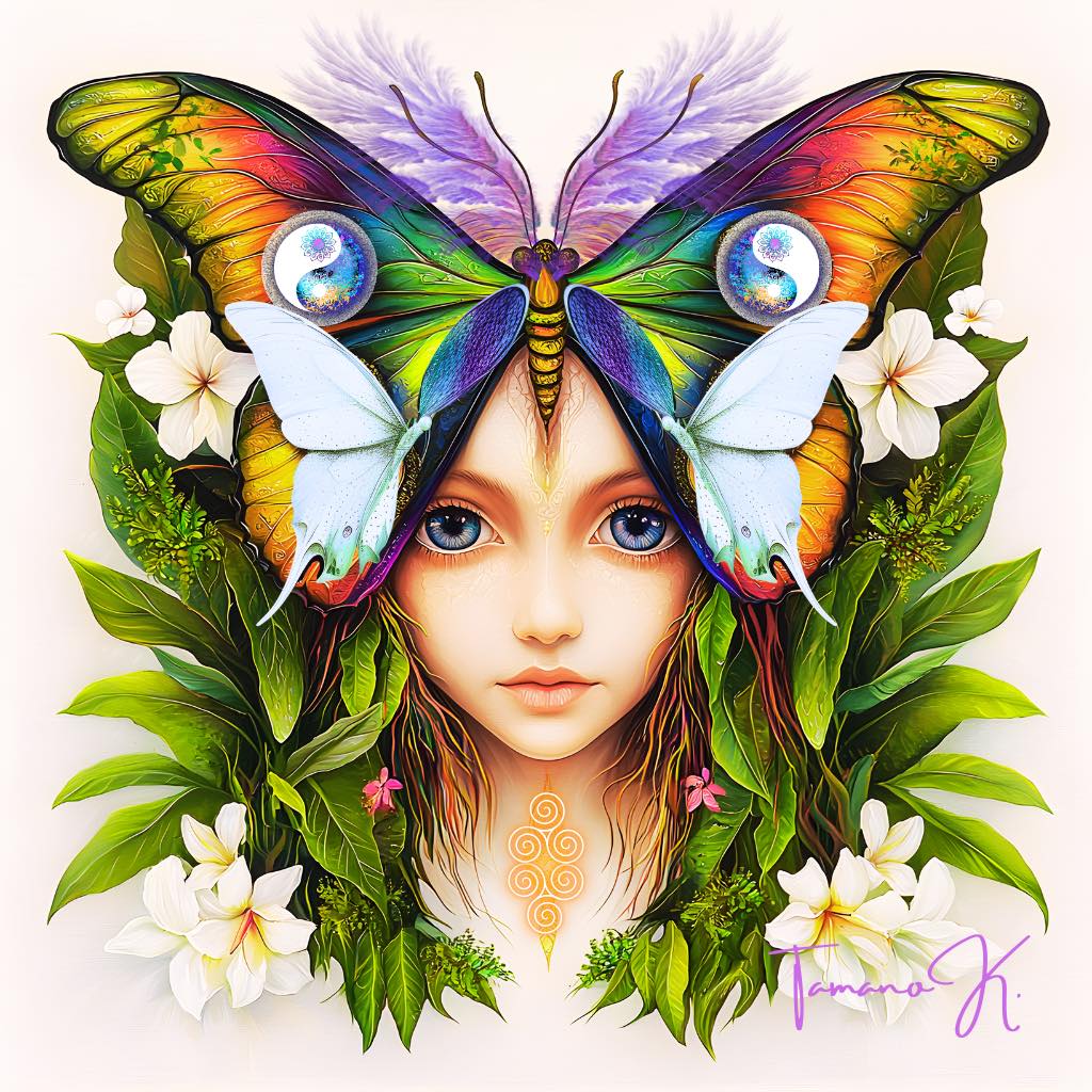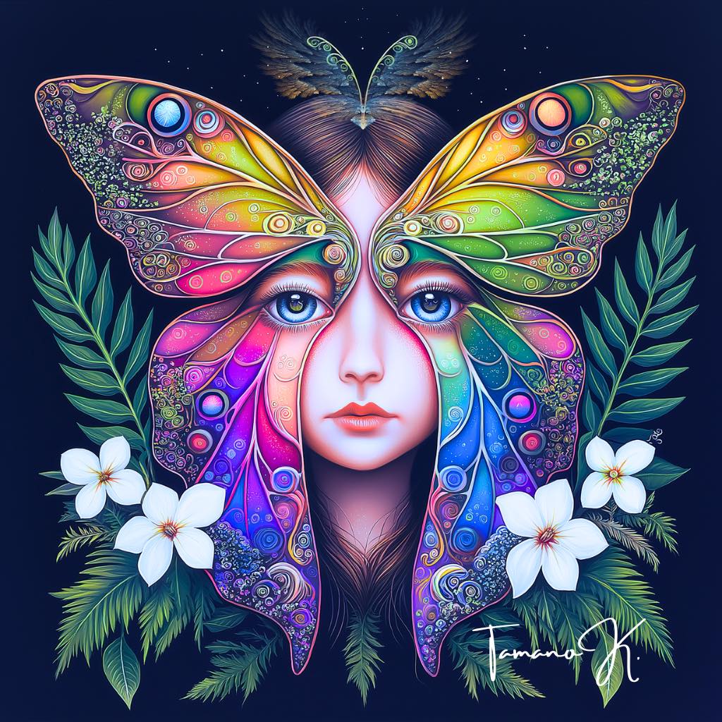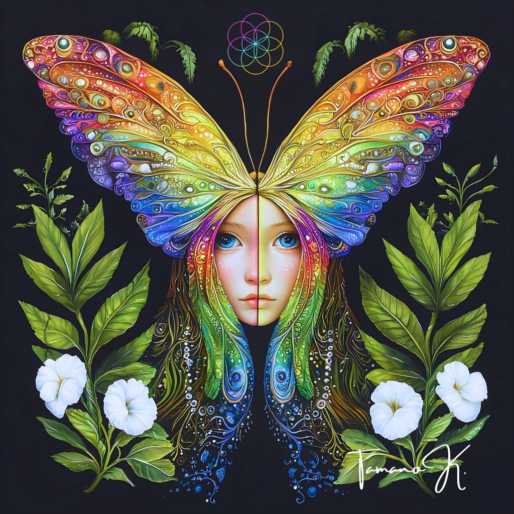 蝶は夢の記憶を運び、花はその夢をやさしく抱きしめる。