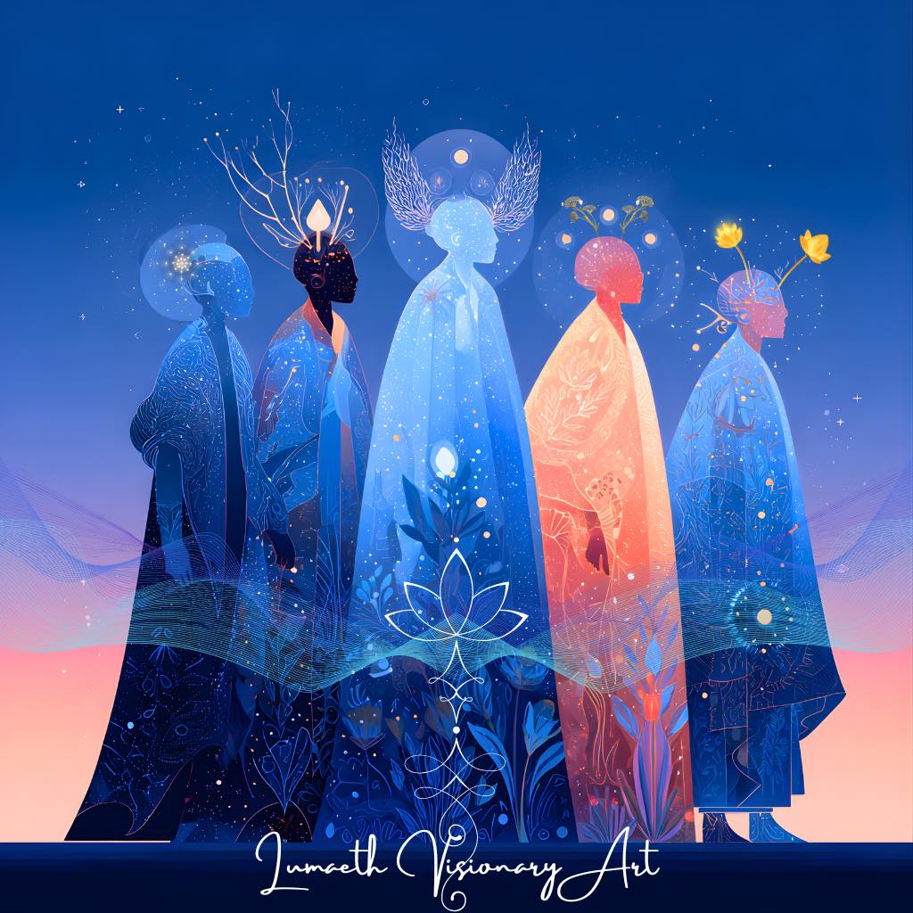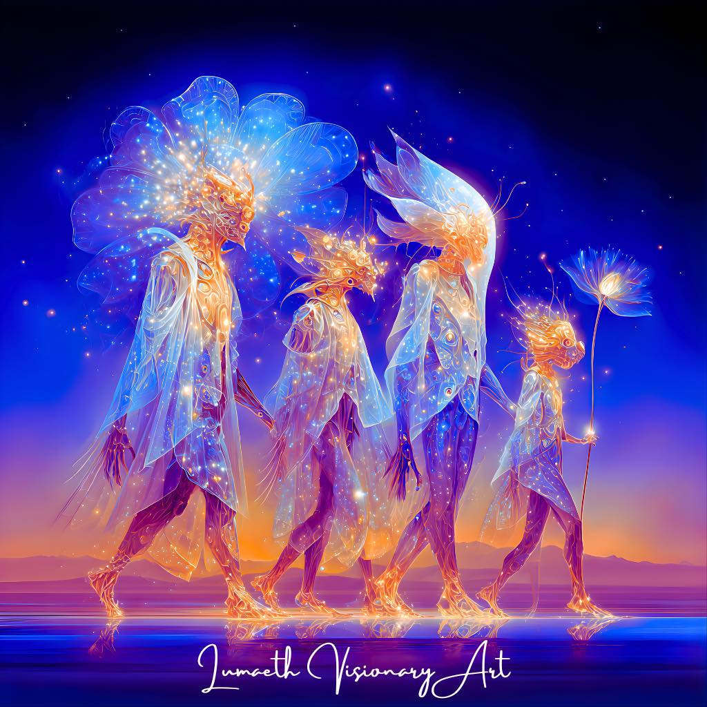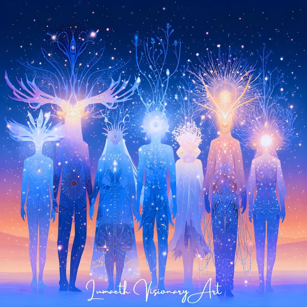 名も無き者たちは、言葉の彼方からやってくる。 彼らは名を持たない。 けれど、その存在が放つ光こそが、すべての生命の「名」を呼び覚ます。 彼らは星々の記憶を運び、眠れる魂の庭に “光の種” を植えてゆく。 それは、ひとりひとりの胸の奥で静かに芽吹き、
