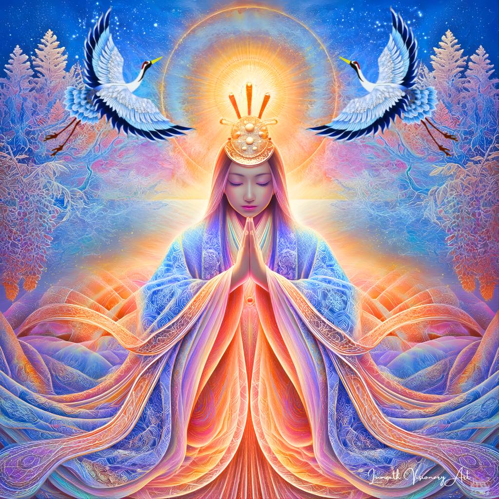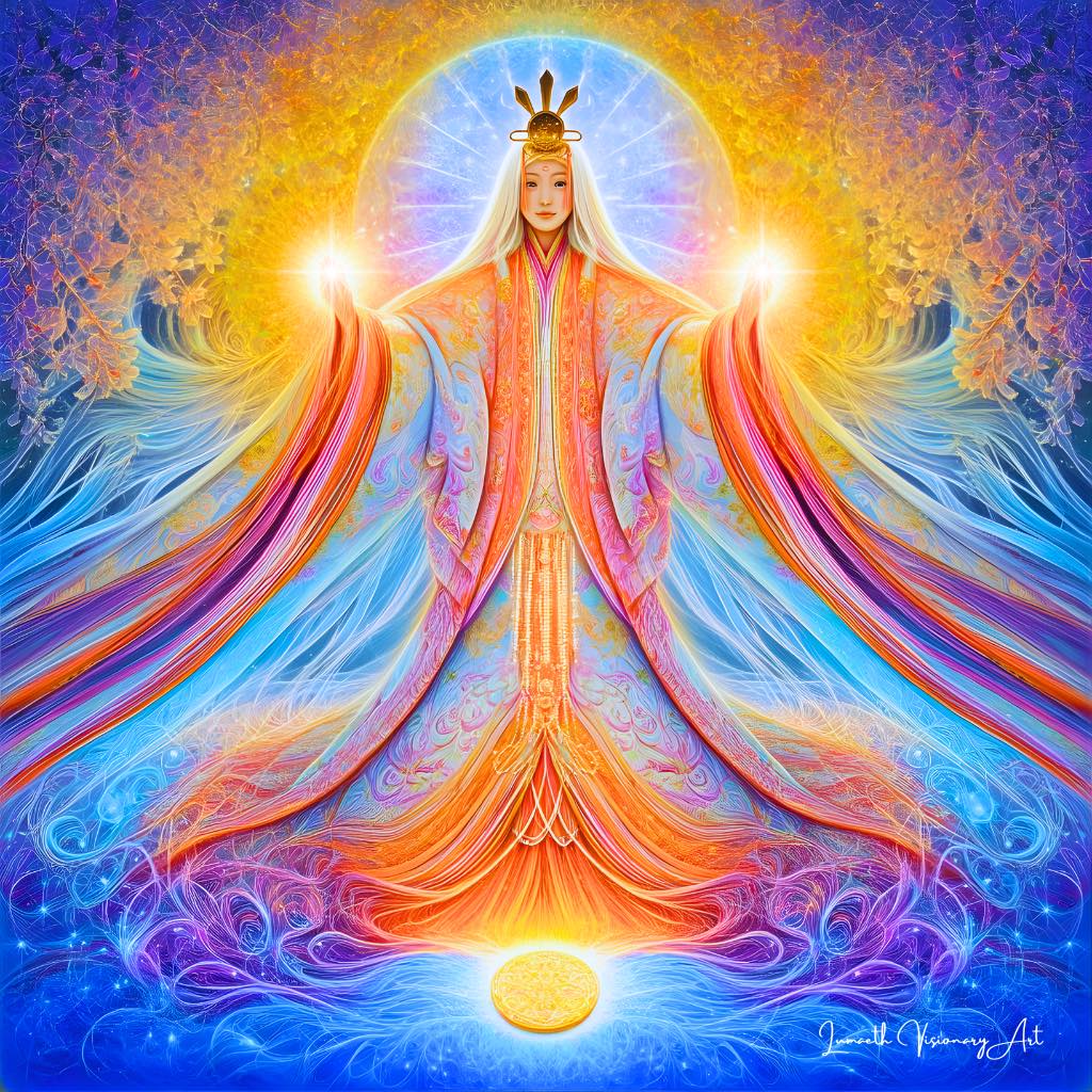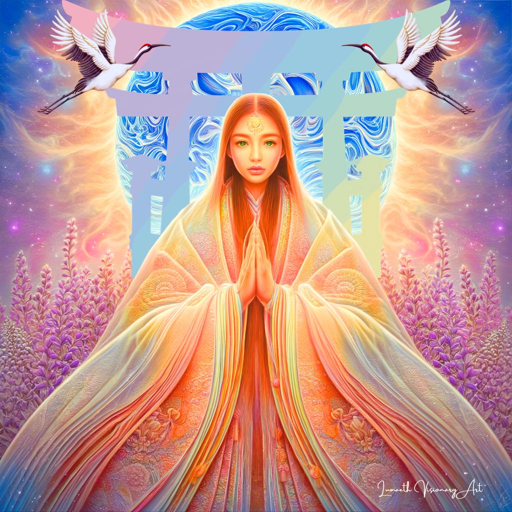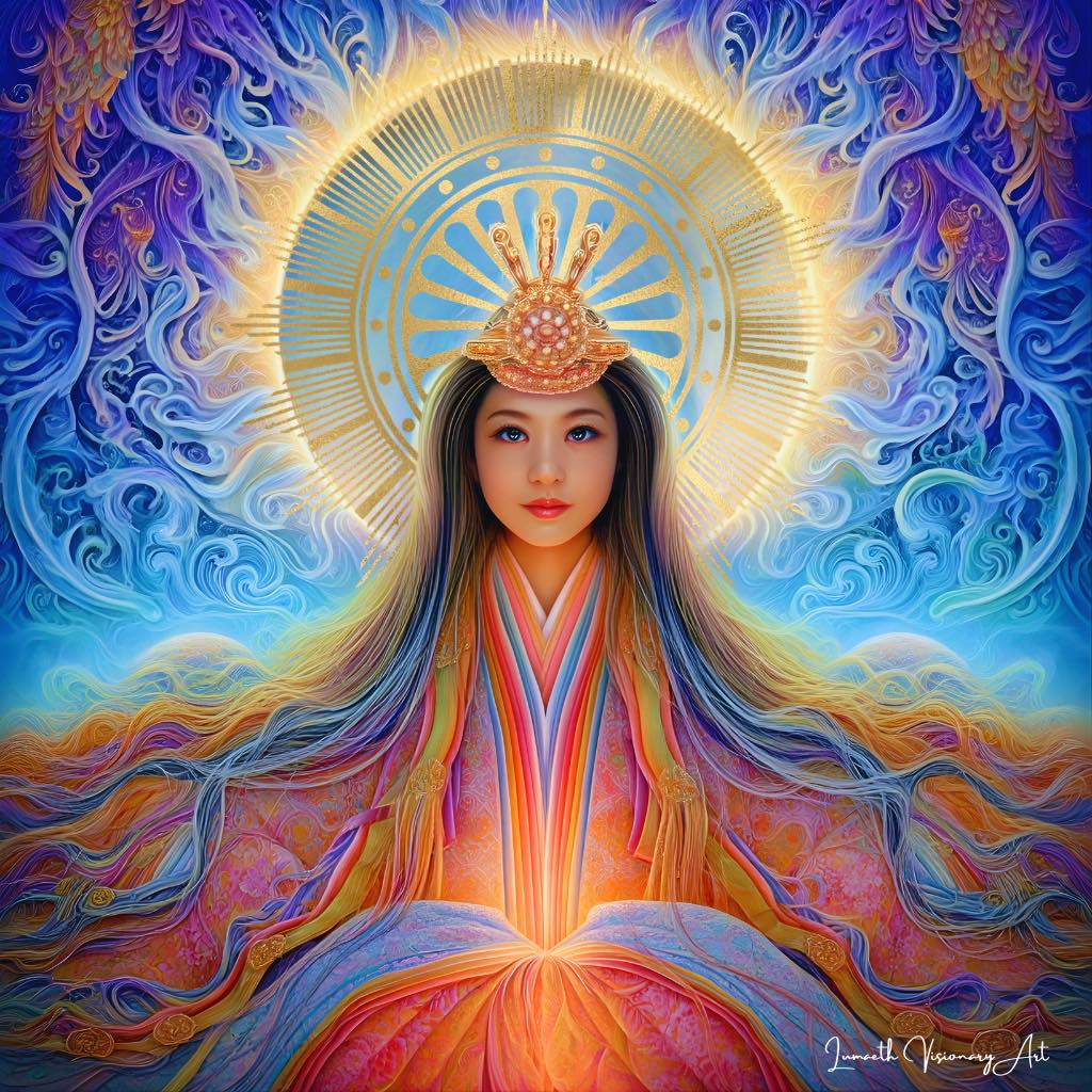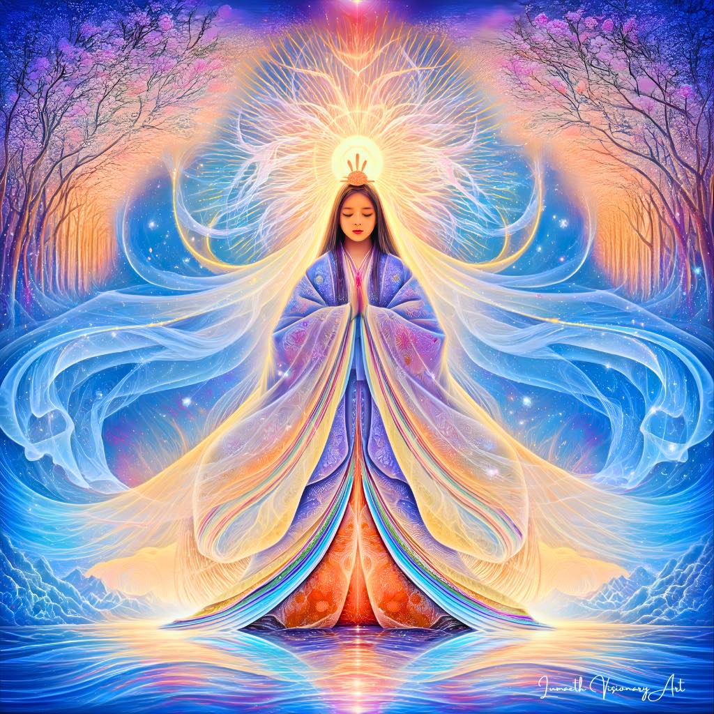 幾億の彩(いろ)を束ねて、一滴のしずくへと溶けゆく静かなる宇宙のゆらぎ。 沈黙の奥底で清らかな旋律が、いま、光を帯びてあふれ出す。 何ものにも染まらぬ、深く透き通った聖域。 その瞳に映し出された世界は、ただ優雅な粒子へと還る。 永遠が、いま、穏やかに息づく。