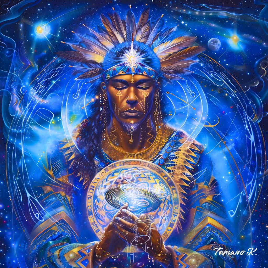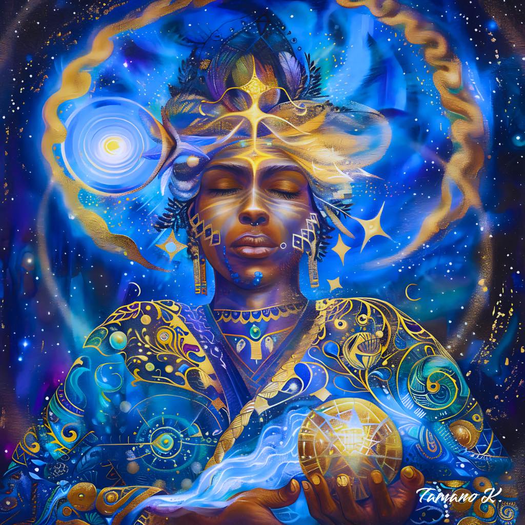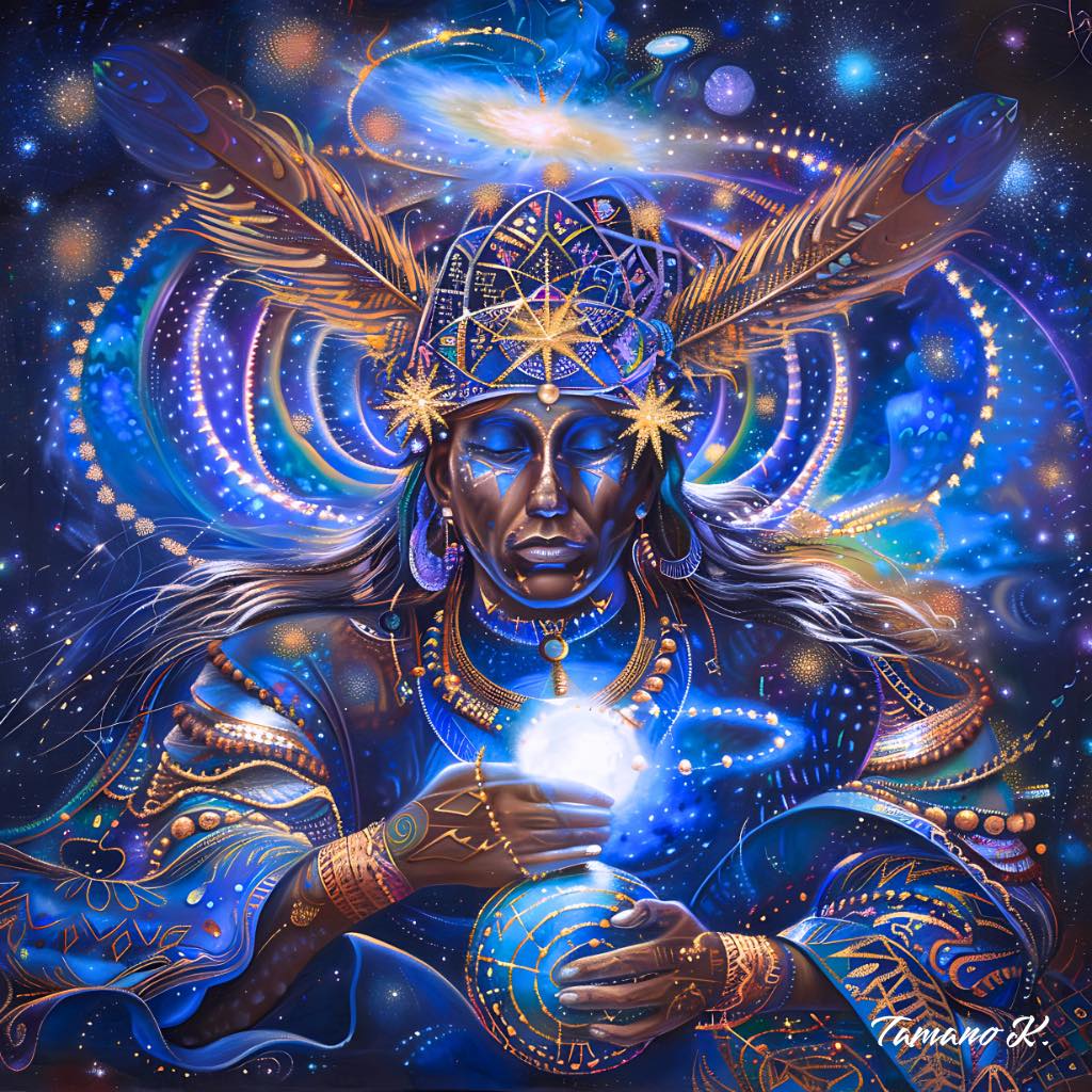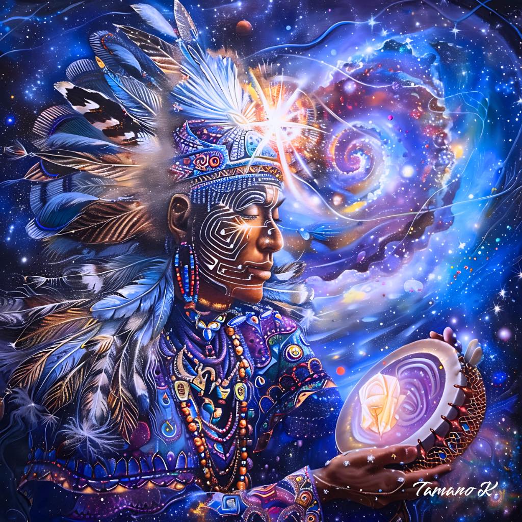彼は、無数の星たちが語りかける声を聴いている。 それは過去でも未来でもない⋯ 今この瞬間、宇宙が呼吸するリズムそのもの。 螺旋の光は、魂の記憶をほどき、星のコードを胸の奥に灯す。