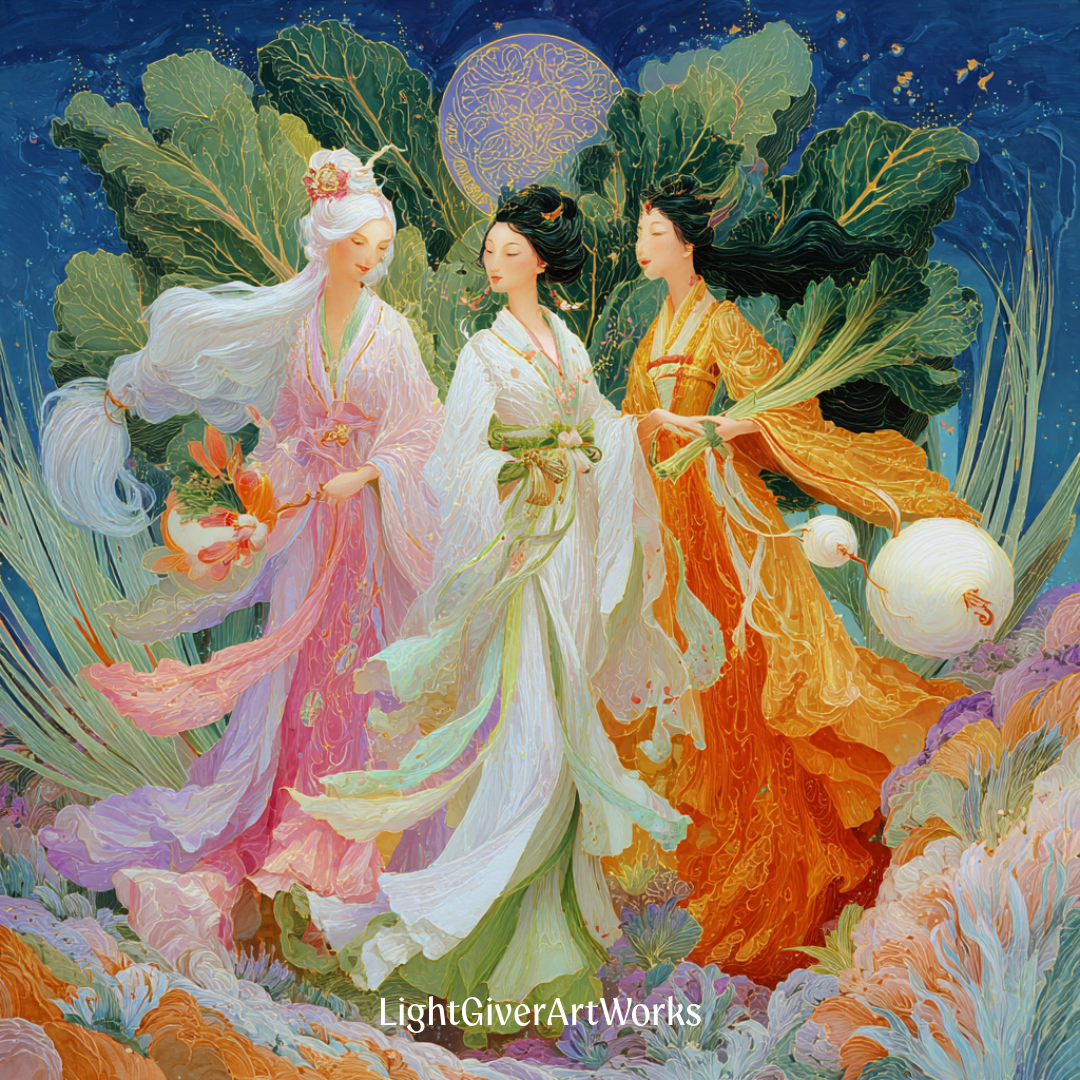 秋から冬へ――大根、白菜、カブ、ほうれん草の妖精たちが舞い踊る。その舞は遊びのように軽やかでありながら、神秘的で大人びた祈りの儀式。